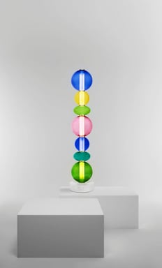 La lampe Totem est une création emblématique du style minimaliste réalisée par Patricia Urquiola et commercialisée par Louis Vuitton en 2019.